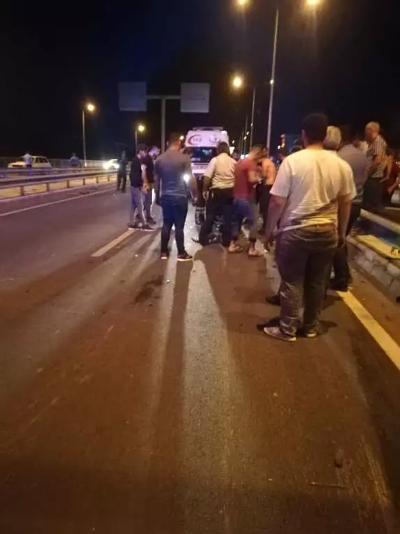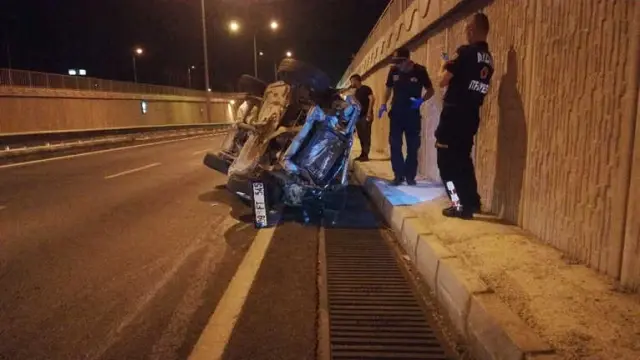 Sürücüsü henüz tespit edilemeyen ve aşırı süratli olduğu belirtilen otomobil, önce yol kenarındaki demir korkuluklara çarptı. Ardından taklalar atarak yuvarlanmaya başladı. Kaza yaptıktan sonra yaklaşık 200 metre yuvarlanan otomobilin içerisinde bulunan 5 kişi otomobilden yola savruldu.