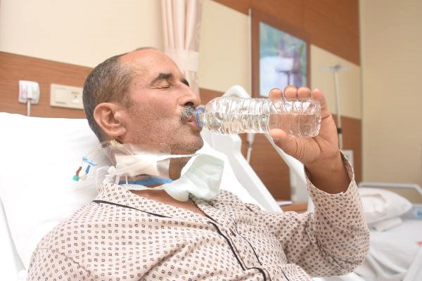 Çanakkale’nin Bayramiç ilçesinde işçi emeklisi Mehmet Aydın (56), böbrek rahatsızlığıyla dünyaya geldi. Yarım asırdır ilaç tedavileri ve doktor kontrolleriyle suya hasret olarak hayatını sürdüren Mehmet Aydın’a iki hafta önce bağışlanan böbrek nakledildi. Hastalığı nedeniyle yarım asırdır günde 3 bardak su içerek yaşayan Aydın, naklin ardından günde 4 litre su içmeye başladı. Aydın, kana kana su içmenin yanı sıra sağlığına kavuşmanın da mutluluğunu yaşadı.