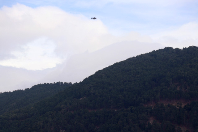 Askeri helikopterle havadan destek veren ekipler de çalışmalarına devam ediyor.